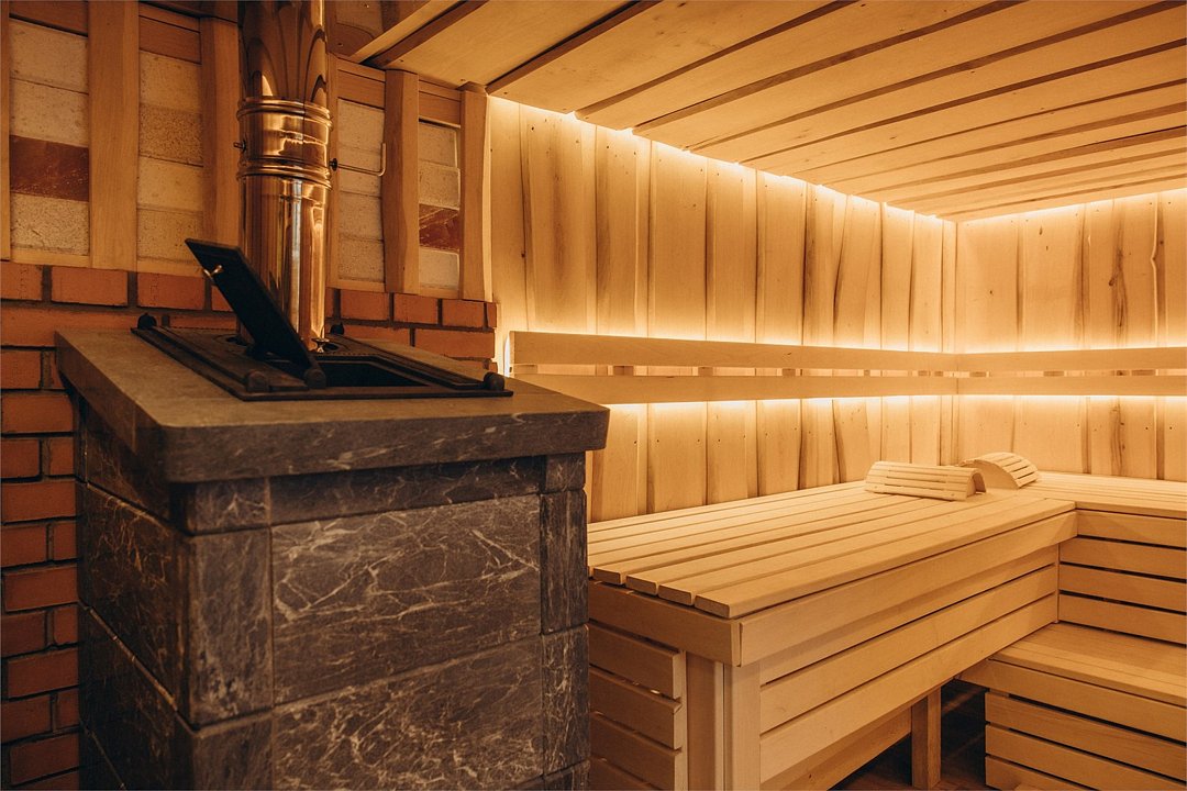 Банный комплекс с отдельным двориком, уютным домиком и настоящей русской баней. Наша традиционная русская баня, где каждый элемент создан для настоящего расслабления и оздоровления, замечательно подойдет для самых искушенных любителей мягкого пара. Центральное место бани занимает массивная русская печь, ее мягкий пар насыщает пространство приятным теплом, способствуя глубокой релаксации. Вдоль стен расположены соляные пластины, которые не только придают интерьеру необычную эстетику, но и обогащают воздух полезными минералами, создавая эффект соляной пещеры. Отделка парной из натуральной ольхи добавляет неповторимый уют: светлая древесина с теплым оттенком и легким древесным ароматом гармонично дополняет атмосферу. Максимальное количество гостей бани — 8 человек. Стоимость указана за 4 гостей, доплата за каждого дополнительного гостя – 2.000 р.Услуги и удобства