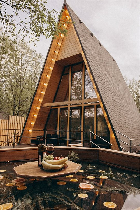 А-фрейм Стандарт с баней и купелью для уединенного отдыха