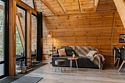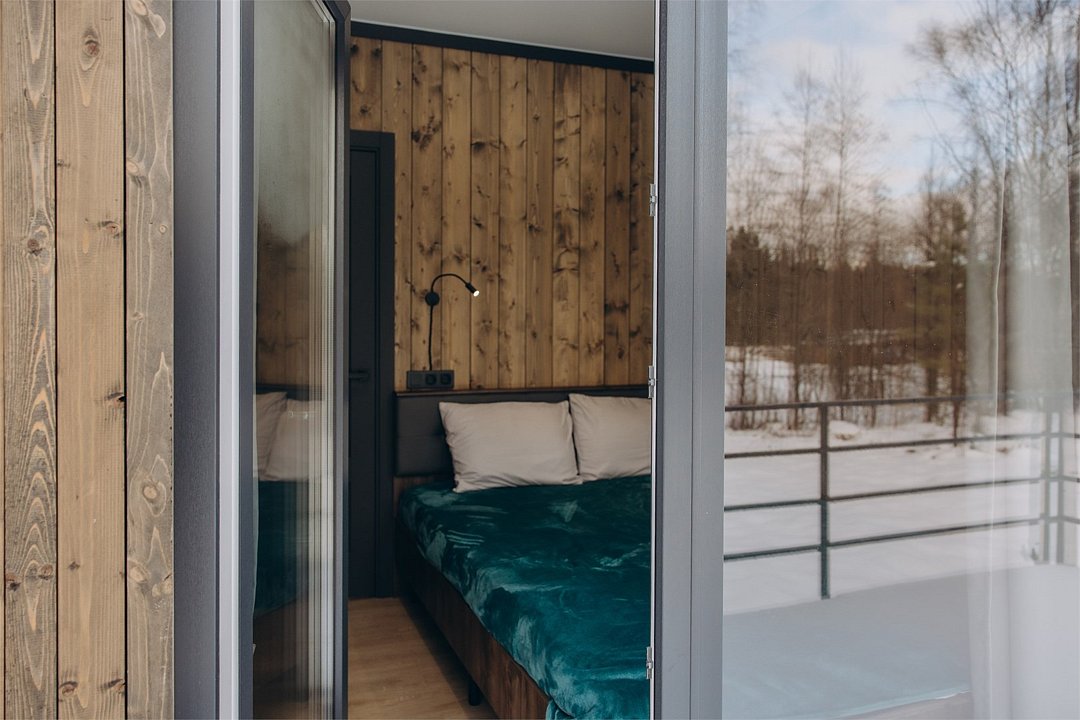 Просторный одноэтажный домик площадью 32 м² сочетает современный дизайн и комфорт загородного отдыха. Панорамные окна наполняют пространство светом и открывают живописный вид на реку, а собственная зона барбекю идеально подойдёт для уютных вечеров на свежем воздухе. В доме — отдельная спальня с одной большой двуспальной и двумя односпальными кроватями, что делает его отличным выбором для семьи или небольшой компании.Услуги и удобства