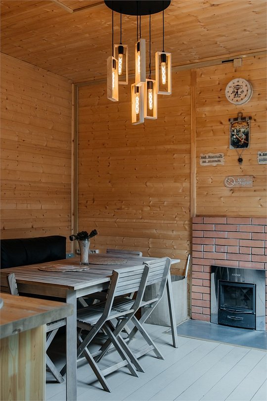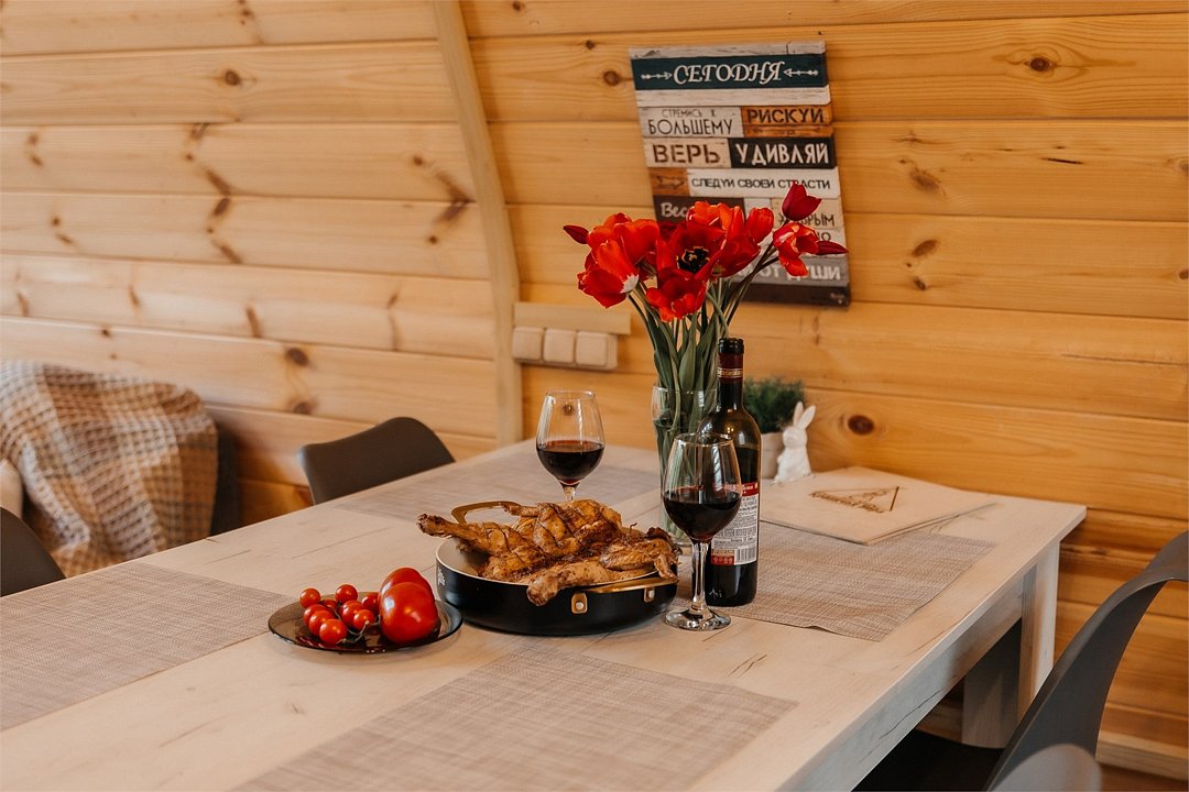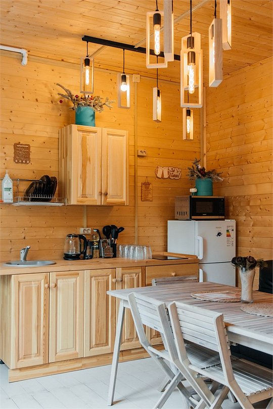 Одноэтажный домик площадью 29 м² создан для уединённого отдыха на природе: панорамные окна открывают живописный вид на реку, а терраса становится продолжением жилого пространства. Внутри — уютная атмосфера с электрическим камином и всеми удобствами, а снаружи — зона барбекю с грилем, мангалом и садовой мебелью. Особое удовольствие дарит собственная купель у домика — идеальное место для полного расслабления в любое время года. Обратите внимание: пользование купелью оплачивается отдельно и не входит в стоимость проживания. Рекомендуем бронировать купель заранее, чтобы выбрать удобное для вас время и сделать отдых максимально комфортным.Услуги и удобства