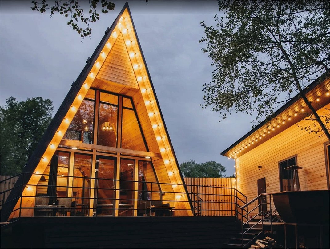 А-фрейм Гранд с большим банным комплексом и мангальной зоной