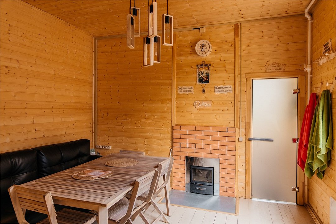Банный комплекс с отдельным двориком, уютным домиком и настоящей русской баней (оплачивается отдельно). Наша традиционная русская баня, где каждый элемент создан для настоящего расслабления и оздоровления, замечательно подойдет для самых искушенных любителей мягкого пара. Центральное место бани занимает массивная русская печь, ее мягкий пар насыщает пространство приятным теплом, способствуя глубокой релаксации. Вдоль стен расположены соляные пластины, которые не только придают интерьеру необычную эстетику, но и обогащают воздух полезными минералами, создавая эффект соляной пещеры. Отделка парной из натуральной ольхи добавляет неповторимый уют: светлая древесина с теплым оттенком и легким древесным ароматом гармонично дополняет атмосферу. Максимальное количество гостей бани — 8 человек. Стоимость указана за 4 гостей, доплата за каждого дополнительного гостя – 2.000 р. Обратите внимание: посещение бани оплачивается отдельно и не входит в стоимость проживания. Рекомендуем бронировать баню заранее, чтобы гарантировать удобное для вас время и полностью насладиться атмосферой отдыха.Услуги и удобства