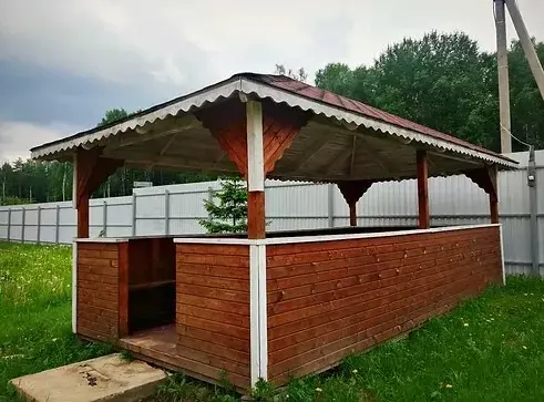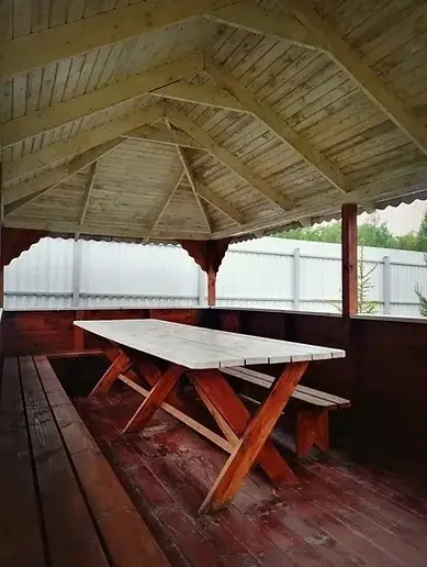 Если вы не являетесь гостями коттеджей, но хотите с удовольствием провести время на природе в кругу друзей или приятной компании, то к вашим услугам уютная мангальная зона и большая деревянная беседка.