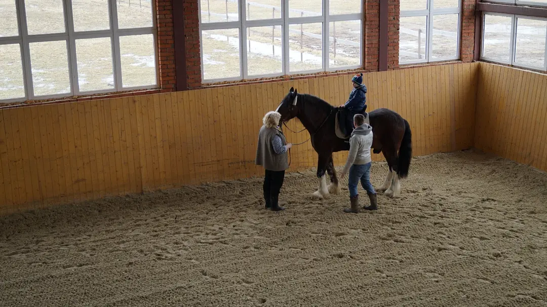 Одновременно могут заниматься четыре спортсмена, а их знакомые — наблюдать с уютной галереи над манежем и угощаться вкусным травяным чаем.