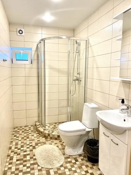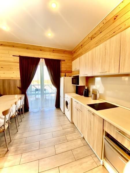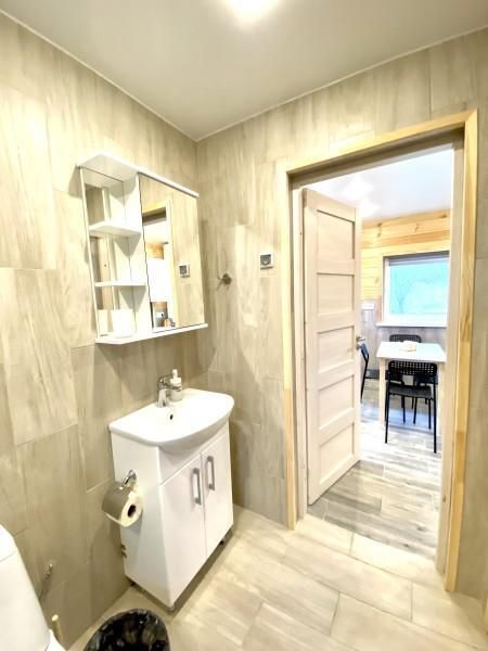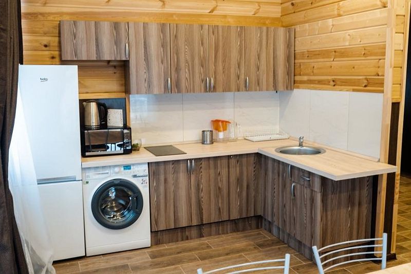В коттедже две отдельные спальни и кухня-гостиная с раскладным широким диваном. Коттедж снабжен всем необходимым для самого комфортного отдыха: светлая и просторная душевая комната, огромный зал позволяет проводить семейные и дружеские мероприятия, коттедж обогревается теплыми полами.