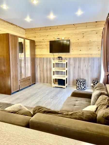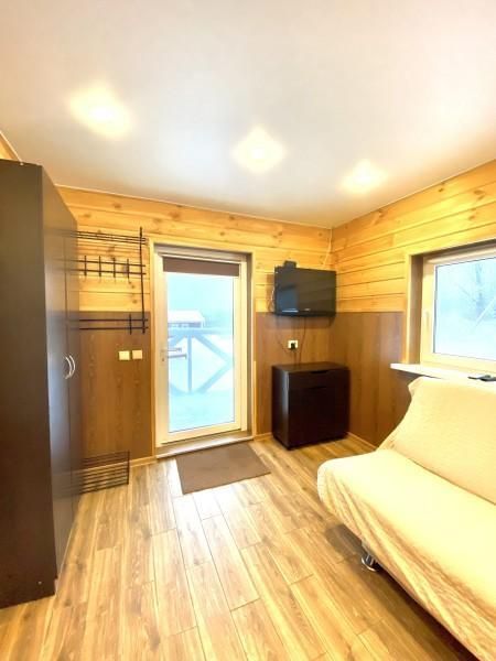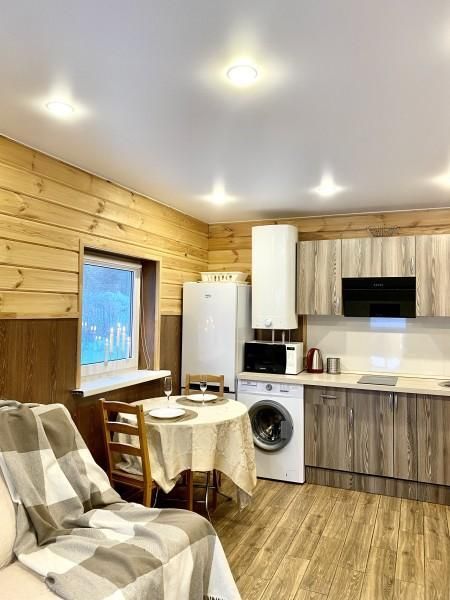 В коттедже одна отдельная спальня и кухня-гостиная с раскладным диваном. Также в коттедже имеется сауна. Коттедж снабжен всем необходимым для самого комфортного отдыха.