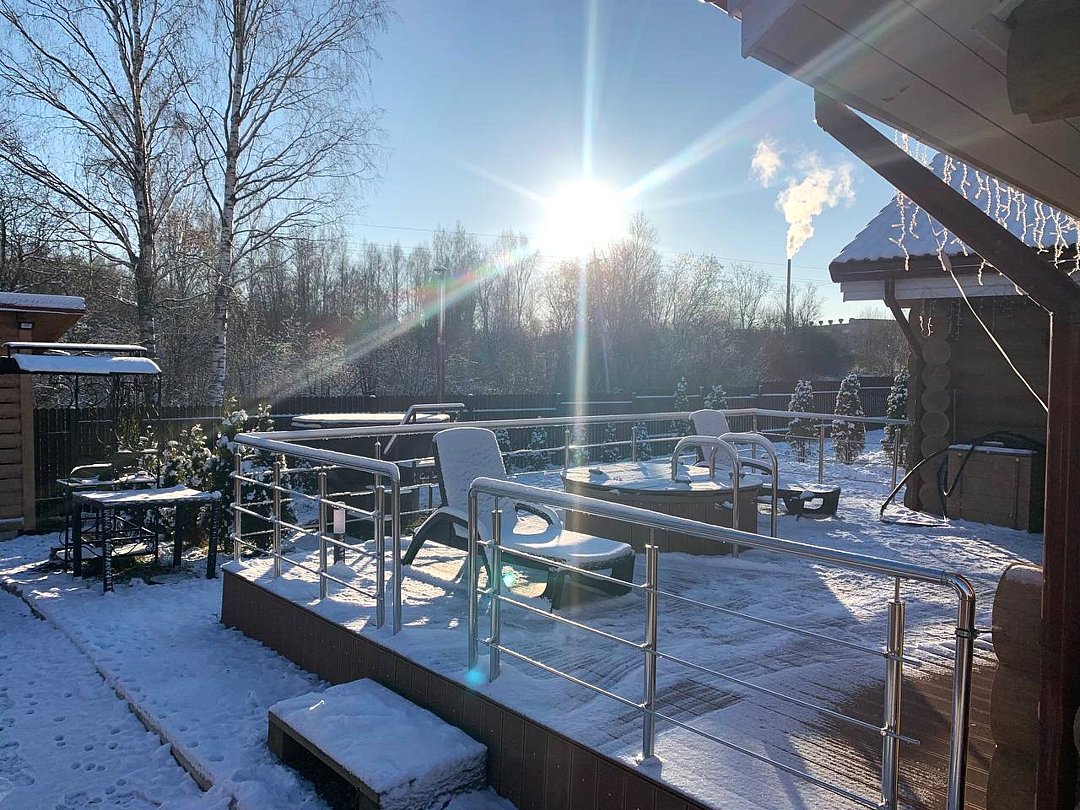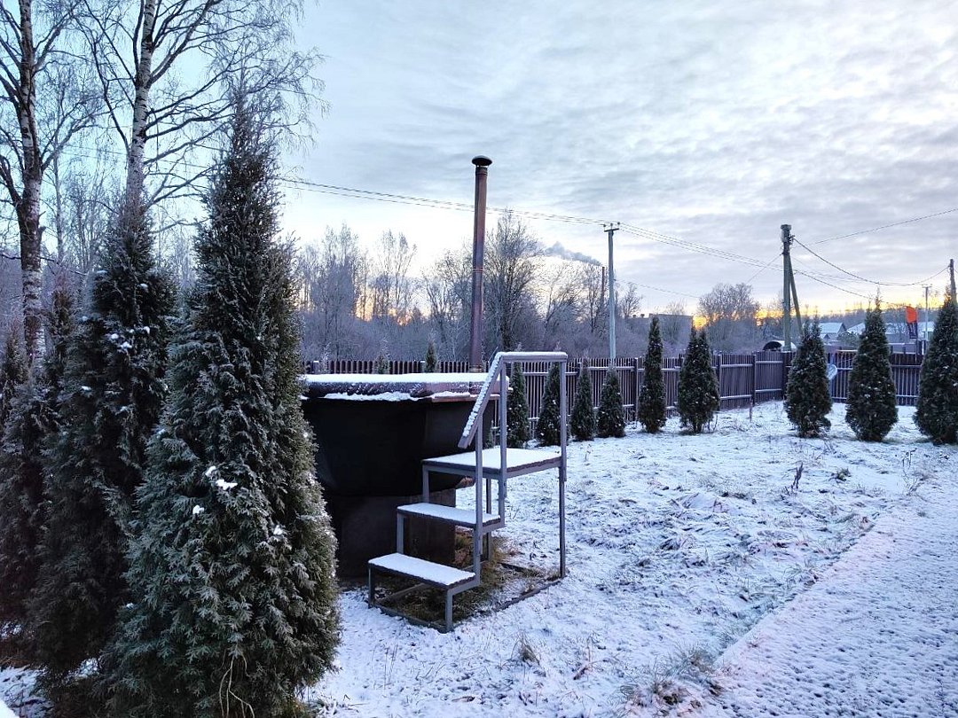 Купель расположена на террасе. Вы можете окунуться в нее после бани или освежиться в прохладной воде в жаркий летний день.