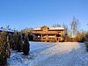 Уютный и светлый компании из 4-6 человек. Для размещения предлагаются 2 спальни на первом и мансардном этажах, также гостиная с мягким раскладным, двуспальным диваном. В гостиной установлен камин, есть телевизор, спутниковое ТВ, Wi-Fi. Для пользования есть два санузла с душевыми, обливное ведро, стиральная машина, фен. Из душевой есть выход на террасу, на которой расположена купель, лежаки, подвесное кресло.
