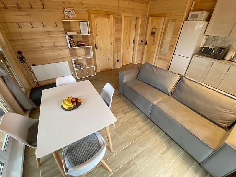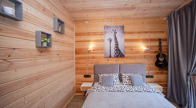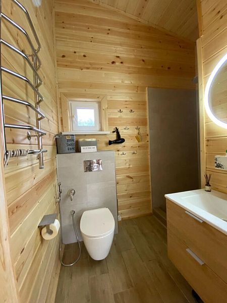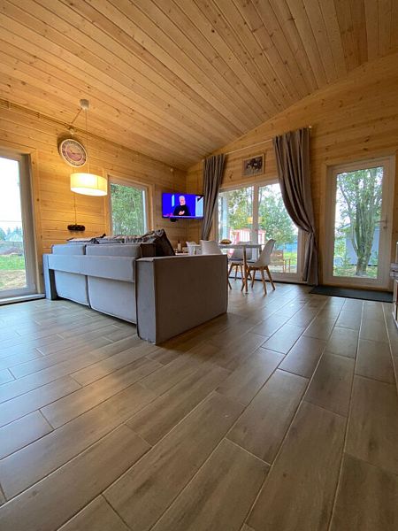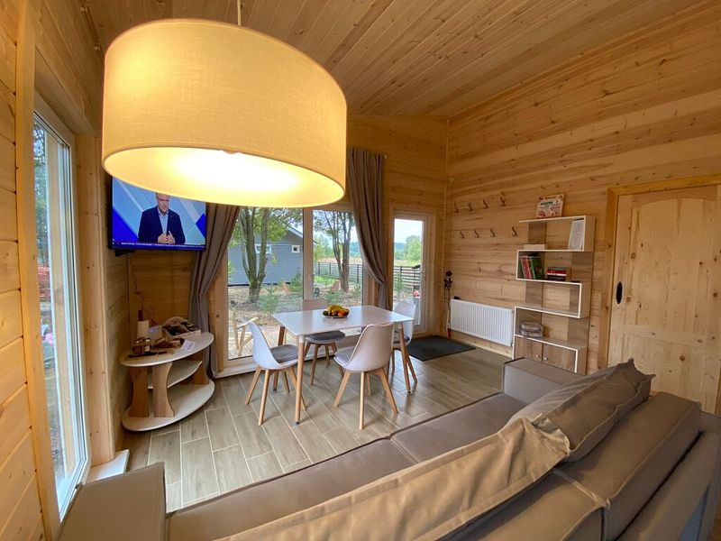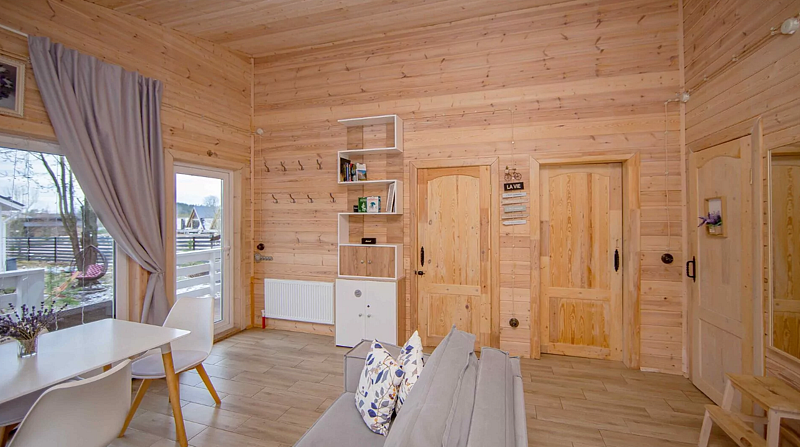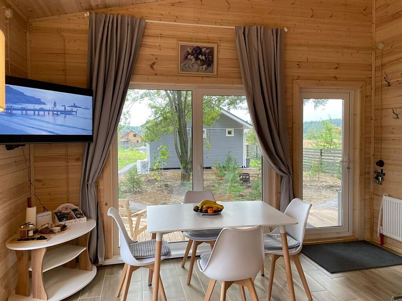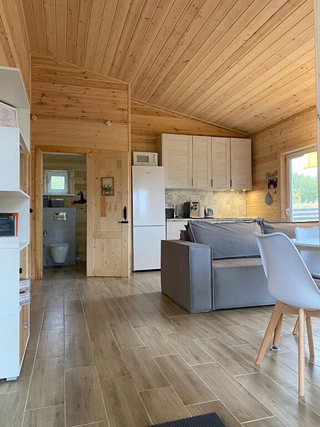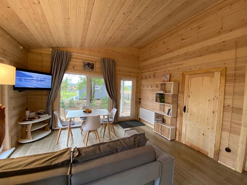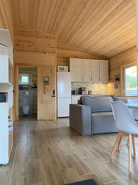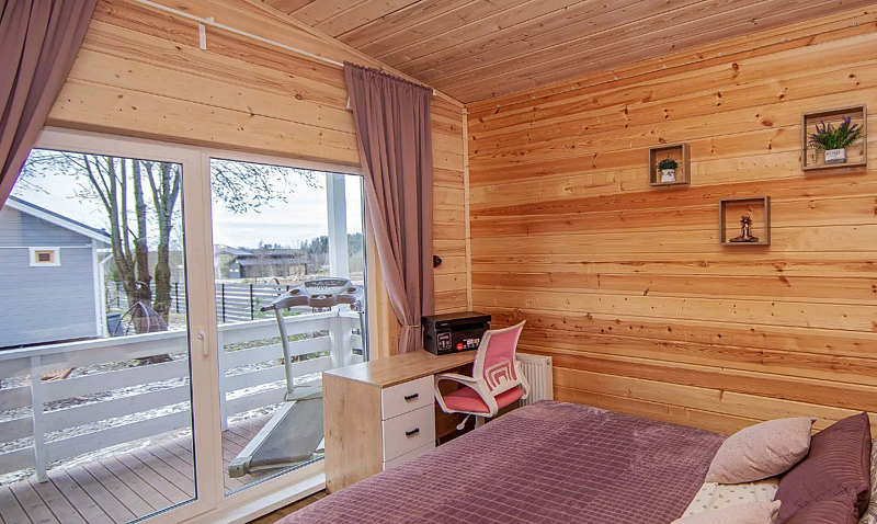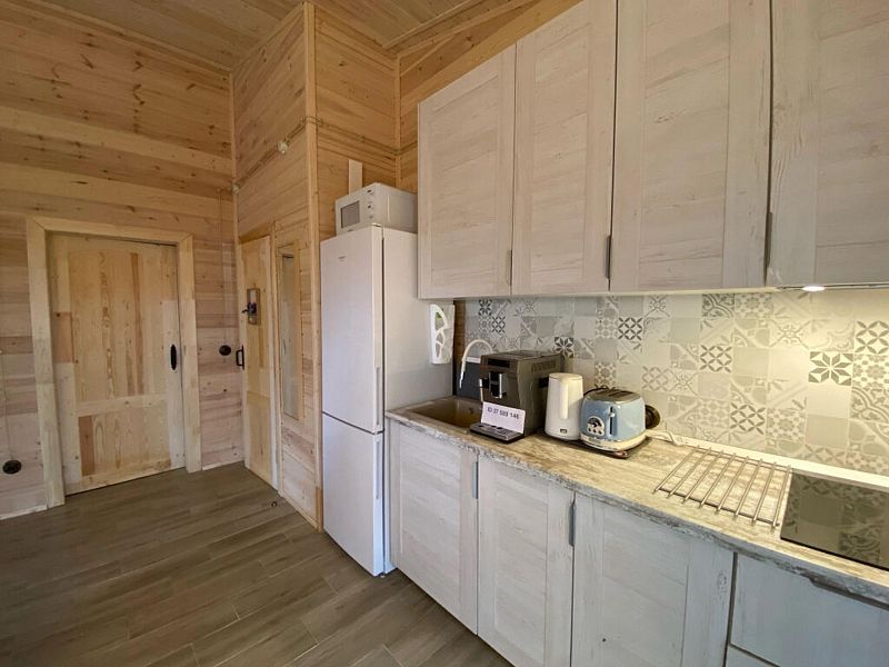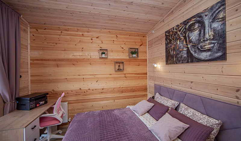 В доме две спальни, кухня-гостиная, совмещенный санузел. Для проживания и отдыха небольшой компании. Есть условия для удаленной работы (ксерокс, принтер. письменный стол).