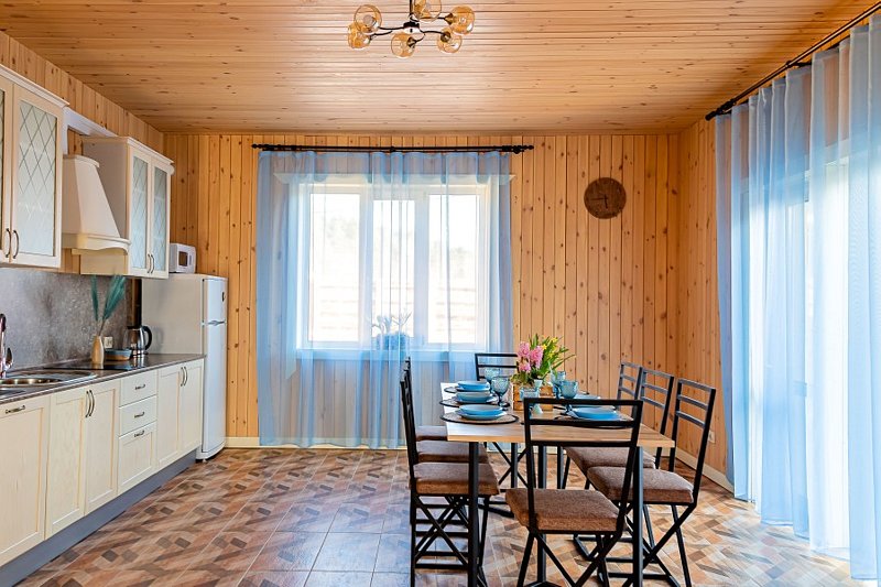 Основные факторы успешного загородного отдыха: просторный коттедж с сауной, оснащенный спутниковым телевидением, бесплатным Wi–Fi, мангальной зоной, двумя санузлами, душевой кабиной, а также кухней со всем необходимым и тремя спальнями для компании из 8 человек.