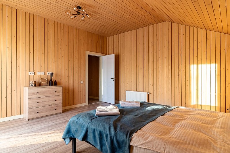 Просторный комфортабельный коттедж премиум-класса, изготовленный из натурального дерева.