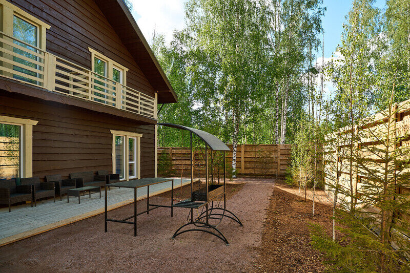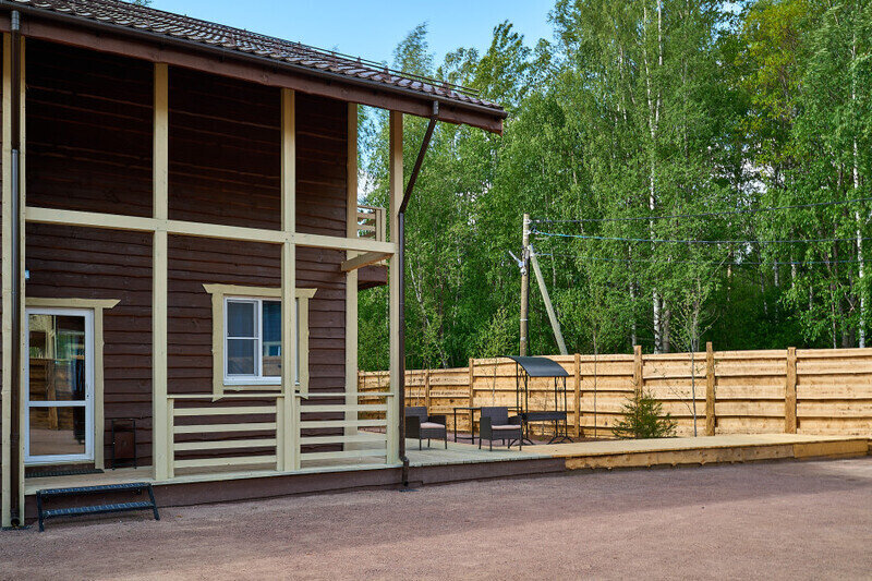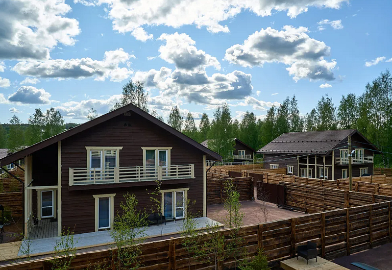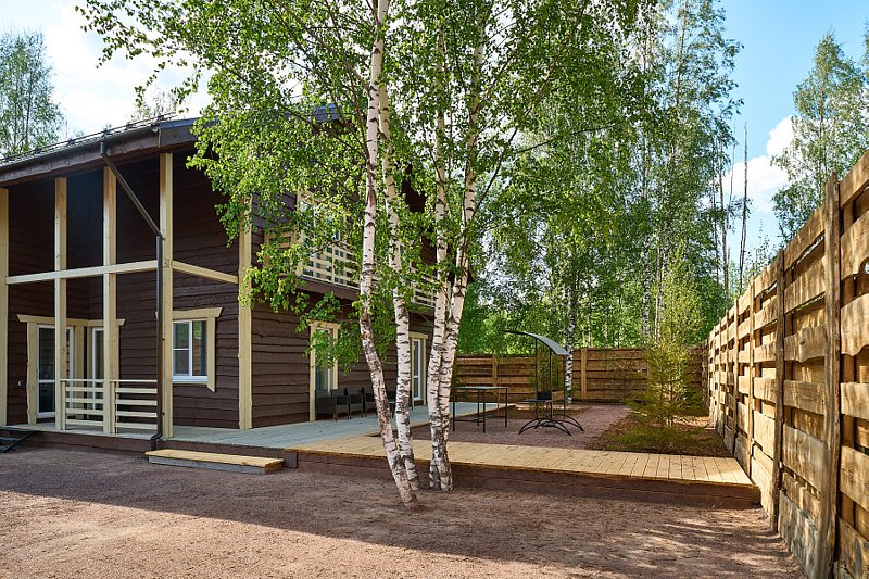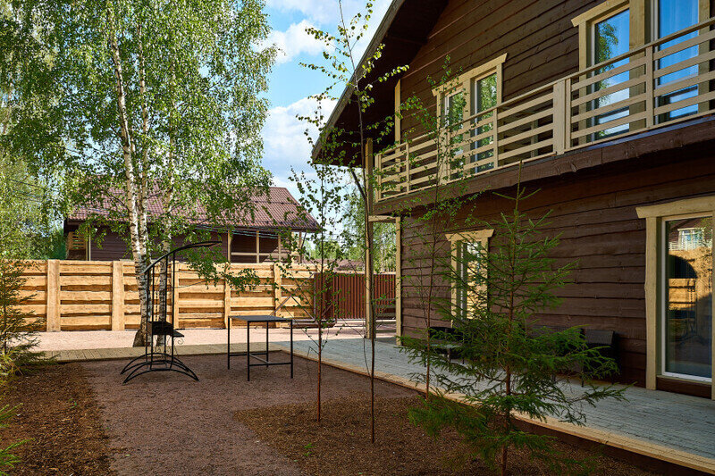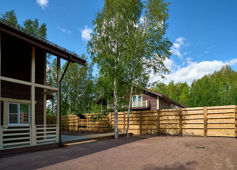 Каждый коттедж имеет свою закрытую территорию с зоной барбекю и парковкой.