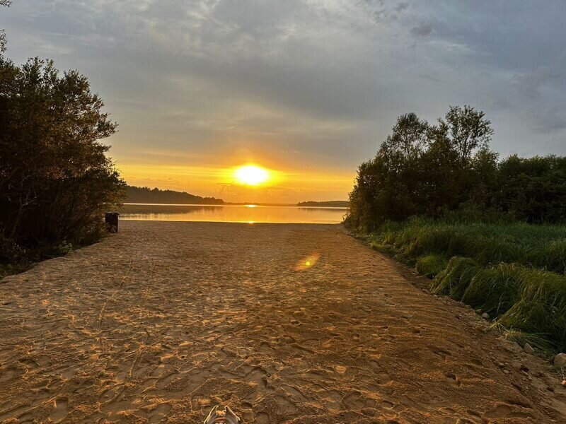 У загородного клуба есть собственный пляж, с шикарным белым песочком и оборудованный лежаками. Чистое лесное озеро и великолепные закаты ждут вас.