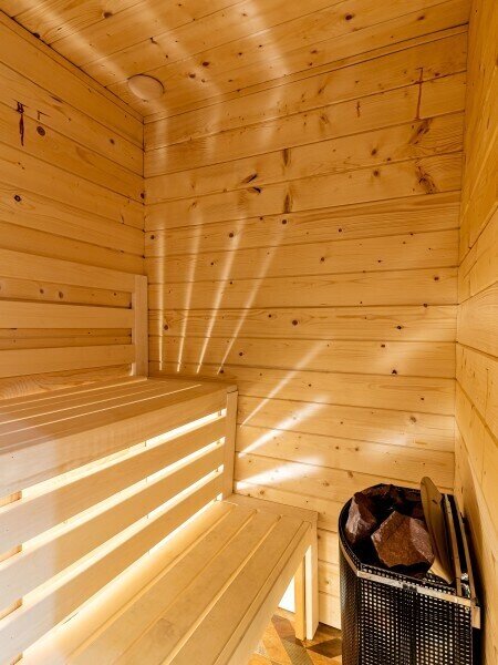 Рекомендуется посетить сауну, где вы сможете освободить свое тело от токсинов. Парилка расположена в каждом коттедже.