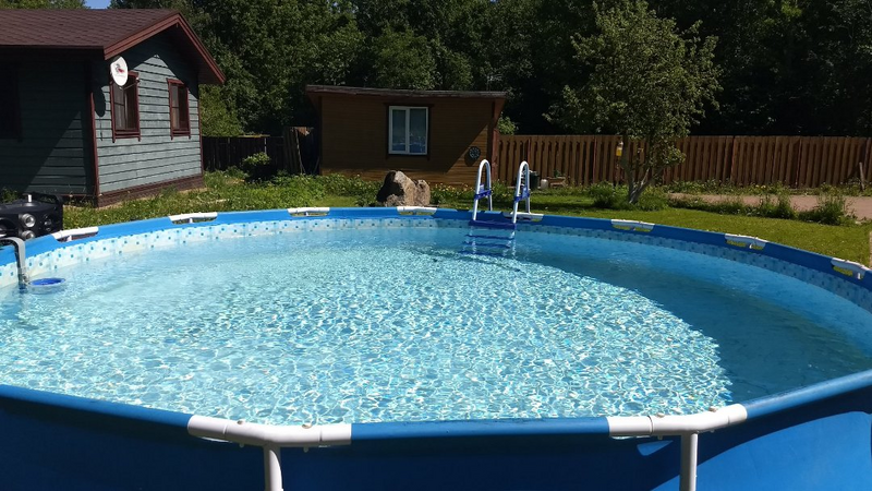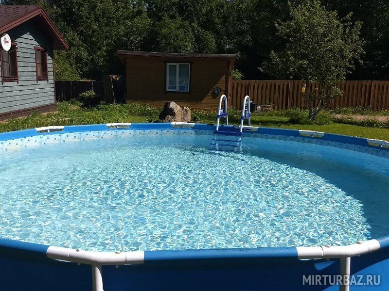 На территории комплекса имеется каркасный бассейн с теплой водой и системой фильтрации. Уровень PH = 7, бесхлорная дезинфекция от MasterPool.