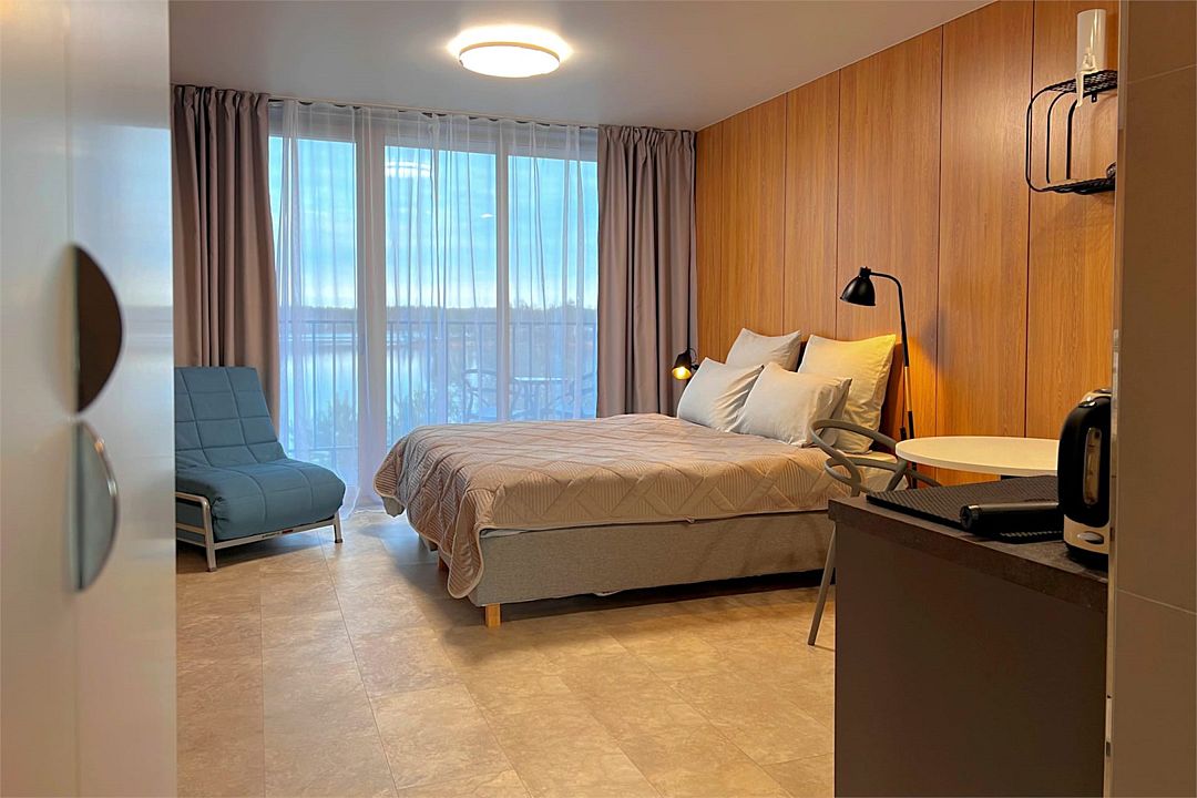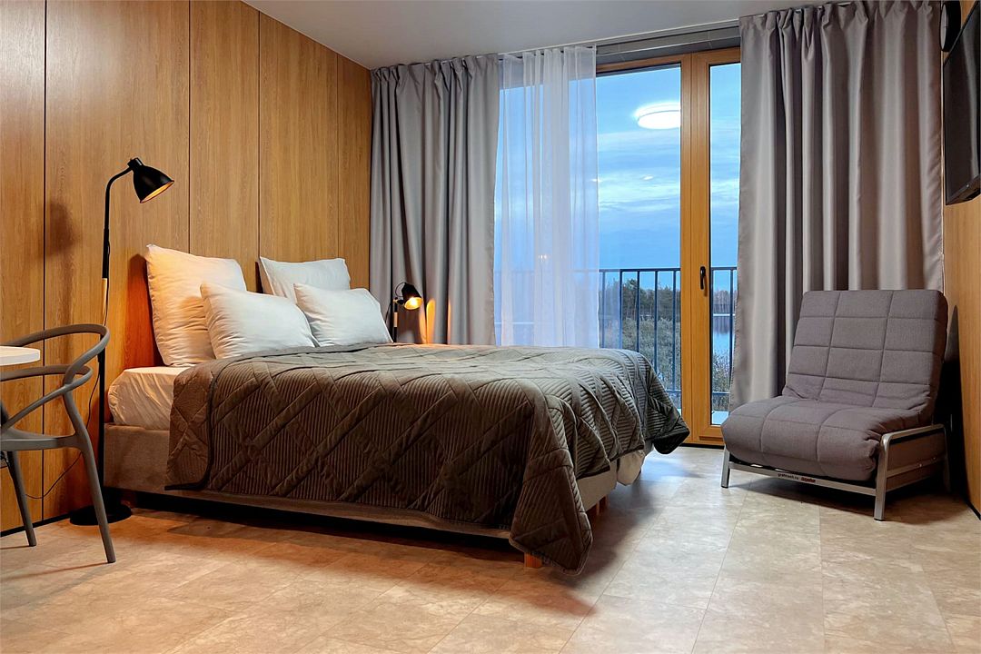 Гостей ждут комфортабельные номера с террасами, с которых открывается живописный вид на озеро.