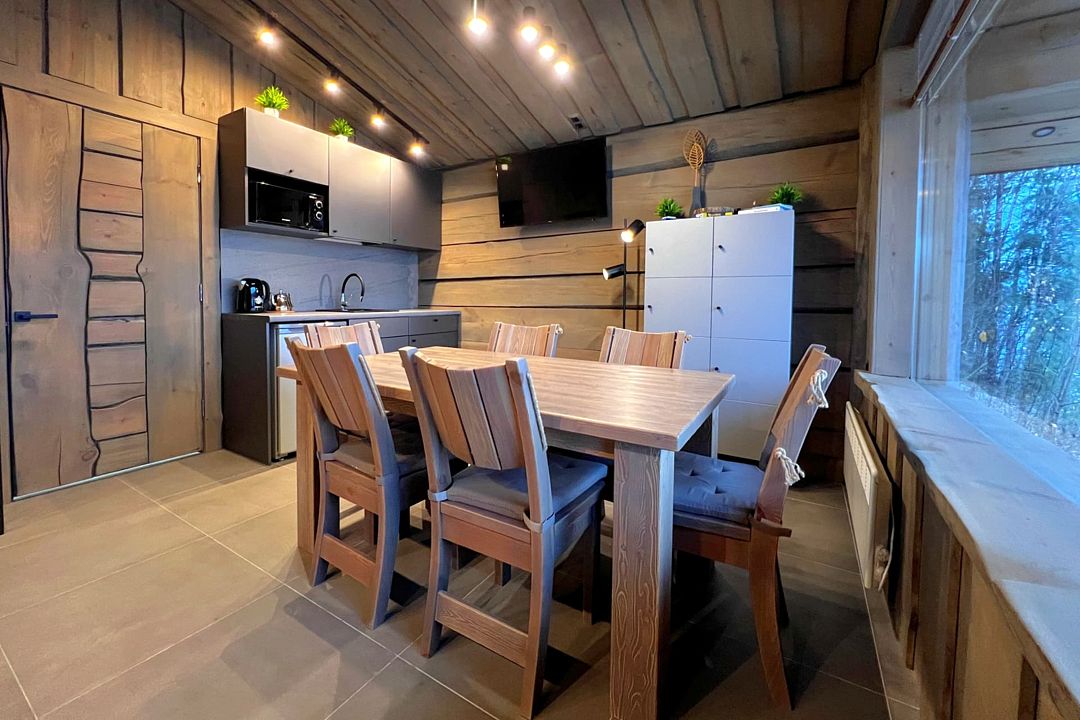 Семейный отдыхДостоинстваМы провели тут четыре ночи: двое взрослых и ребенок. Все в номере было удобно, можно комфортно отдыхать, готовить еду и даже приготовить шашлыки на мангале. Красивый вид на озеро радует глаз. В часе езды — водопад Кивач, Петрозаводск, вотчина Талви Укко и зоопарк Три медведя. Отличная локация.