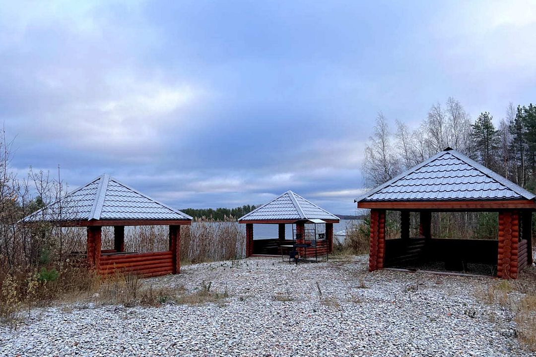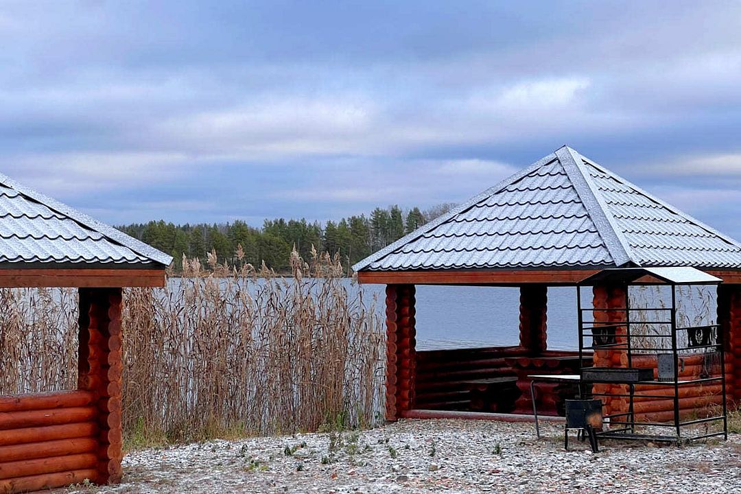 Мангальная зона с тремя уютными беседками на берегу озера - идеальное место для тех, кто хочет насладиться природой Карелии в комфортной обстановке.