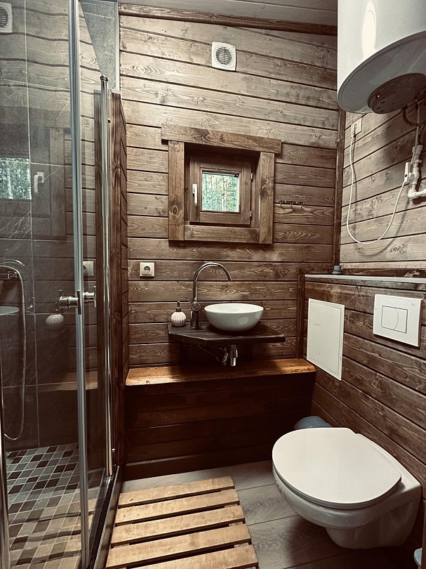 На террасе вы сможете проводить время в любую погоду: пить чай, читать книгу, греться на солнышке или наблюдать за дождем. Кроме того, вы можете насладиться расслабляющими процедурами в классической бане на дровах, что сделает ваш отдых еще более приятным.