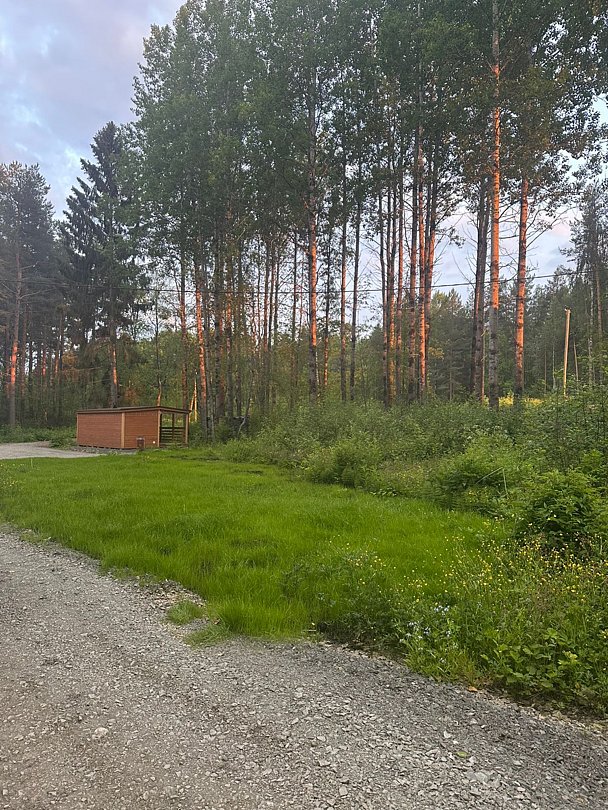 Круглогодичный асфальтированный подъезд по трассе, съезд по грунтовке 50 м. Участок 30 соток, территория — это участок в лесу (грибы и ягоды в пешей доступности), нет забора и асфальтированных площадок.