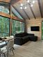 Дом выполнен из экологически чистого карельского материала, вся отделка из природных материалов. В доме дышится гораздо легче, а шум леса и пение птиц помогает восстановиться после городской суеты. Хоть и находится в лесу, здесь прекрасно ловит LTE. Уютный дом с панорамными окнами на всю стену с видом на лес и окнами в пол, вместимостью до четырех взрослых человек