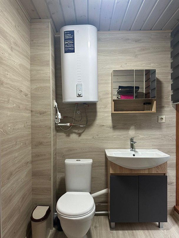 Водоснабжение — своя скважина глубиной 70 метров с чистой водой (есть документы) и станция биологической очистки, просьба обратить внимание и соблюдать рекомендации. Станция может засориться или выйти из строя из-за хлорсодержащих веществ, остатков пищи и гигиенических средств. Два водонагревателя в ванной и на кухне.