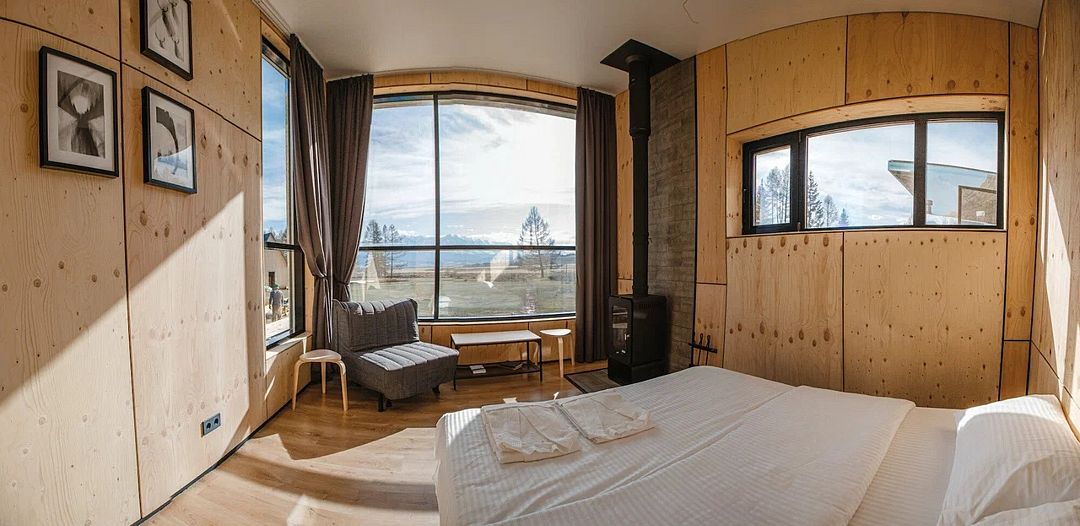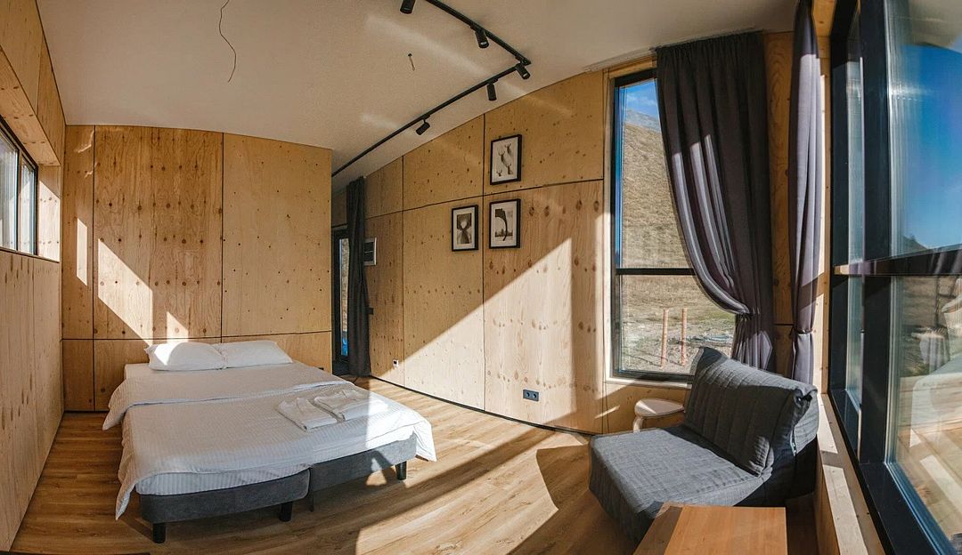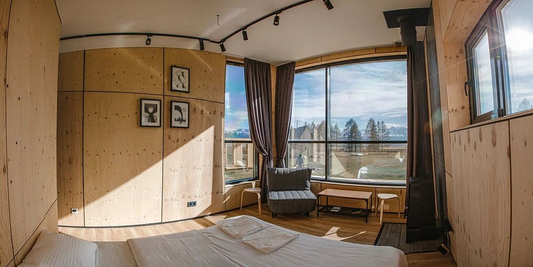 Для проживания вы можете выбрать один из трёх стандартных домиков, либо же комфортабельный коттедж. Все варианты приятно удивят вас стильным оформлением и уютной обстановкой.