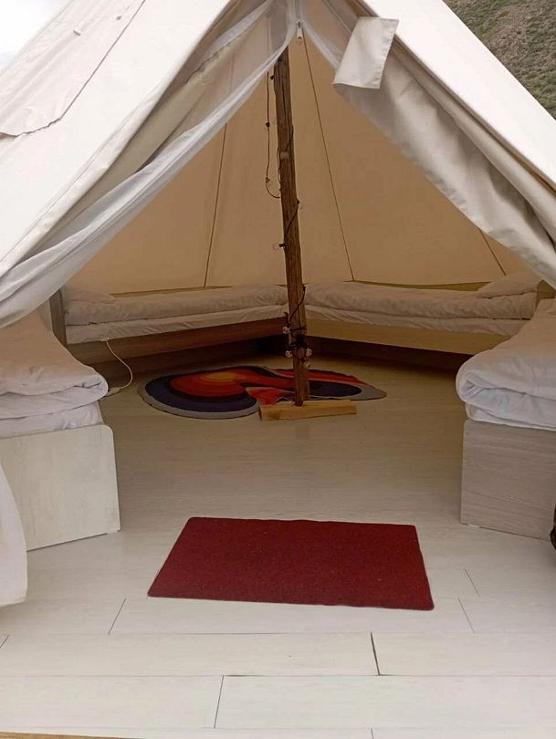 Размещение в палатках. Прекрасный вид на северо-чуйский хребет, коврики, одеяла с электроподогревом - в комплекте.