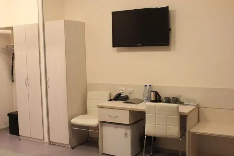В номере вас будут ждать душ, телевизор, халат и тапочки. Оснащение зависит от выбранной категории номера.