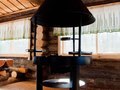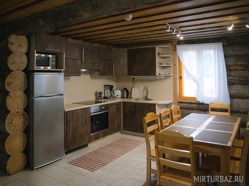 В доме оборудована кухня, где можно самостоятельно готовить пищу. Также имеется мангал и коптильня для приготовления рыбы.