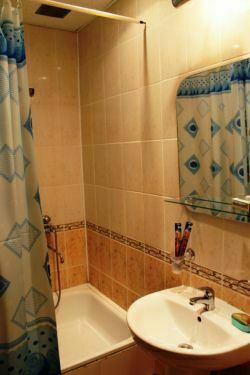 Прихожая, холодильник, телевизор (кабельное ТВ), две односпальные или двуспальная кровать, стол, стулья, плательный шкаф или шкаф-купе, санузел с душем.