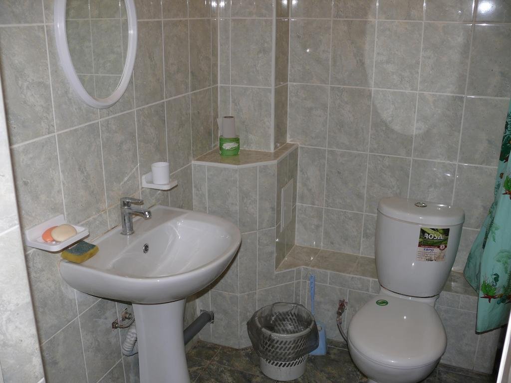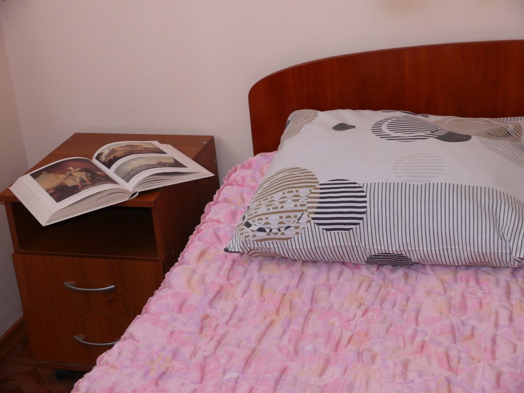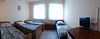 Небольшая комната с двуспальной или двумя односпальными кроватями, телевизором и кабельными каналами. На две комнаты: санузел, прихожая. холодильник, микроволновка. чайник.
