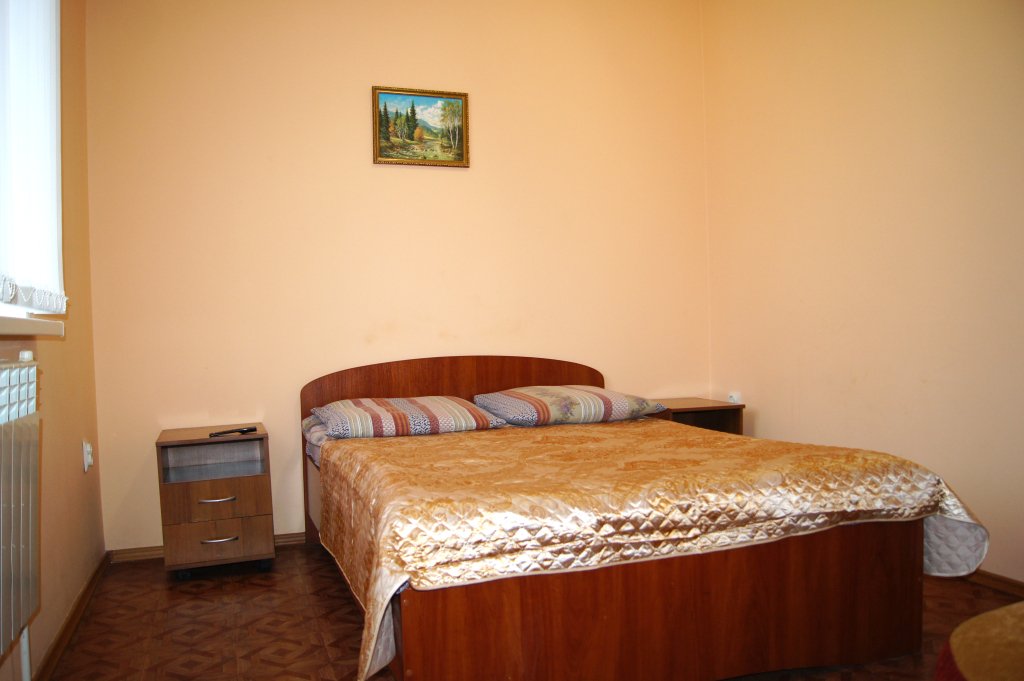 Номер гостиничного типа. В спальне – двуспальная кровать, в гостиной – две тахты. Собственный санузел.