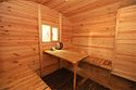 Японская баня Фурако, расположенная рядом с домами А-фрейм, представляет собой небольшую купель, выполненную в форме бочки, которая способна вместить до четырех человек. Купель наполняется теплой водой с температурой 35–45°C, которая нагревается с помощью дровяной печи.