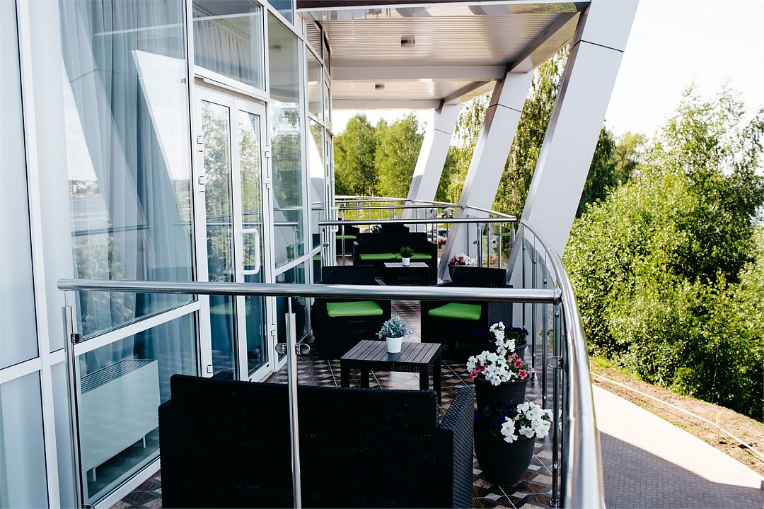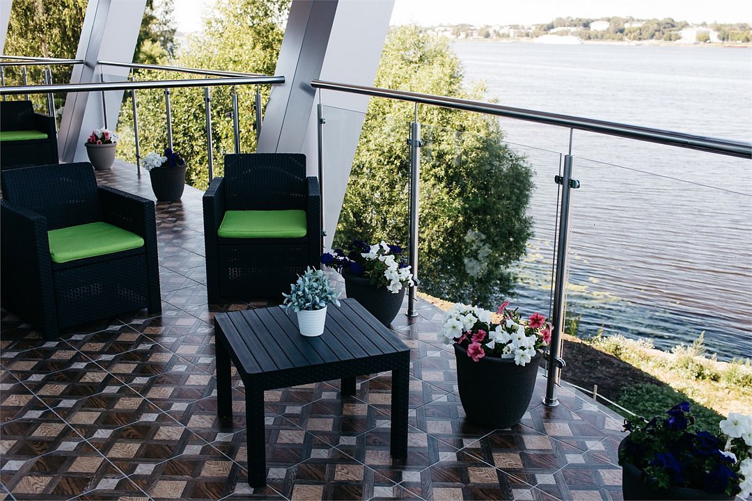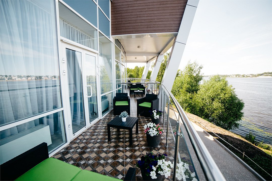 Однокомнатный номер с террасой на 2м этаже. Номер выполнен в приятной цветовой гамме и оснащен всем необходимым для комфортного проживания. В каждом номере данной категории есть большая двуспальная кровать с ортопедическим матрасом, кондиционер, LED - телевизор, сейф, телефон, удобный письменный стол для работы. Приятным дополнением к номеру является прекрасный вид на исторический центр города и акваторию реки Волга.Услуги и удобства
