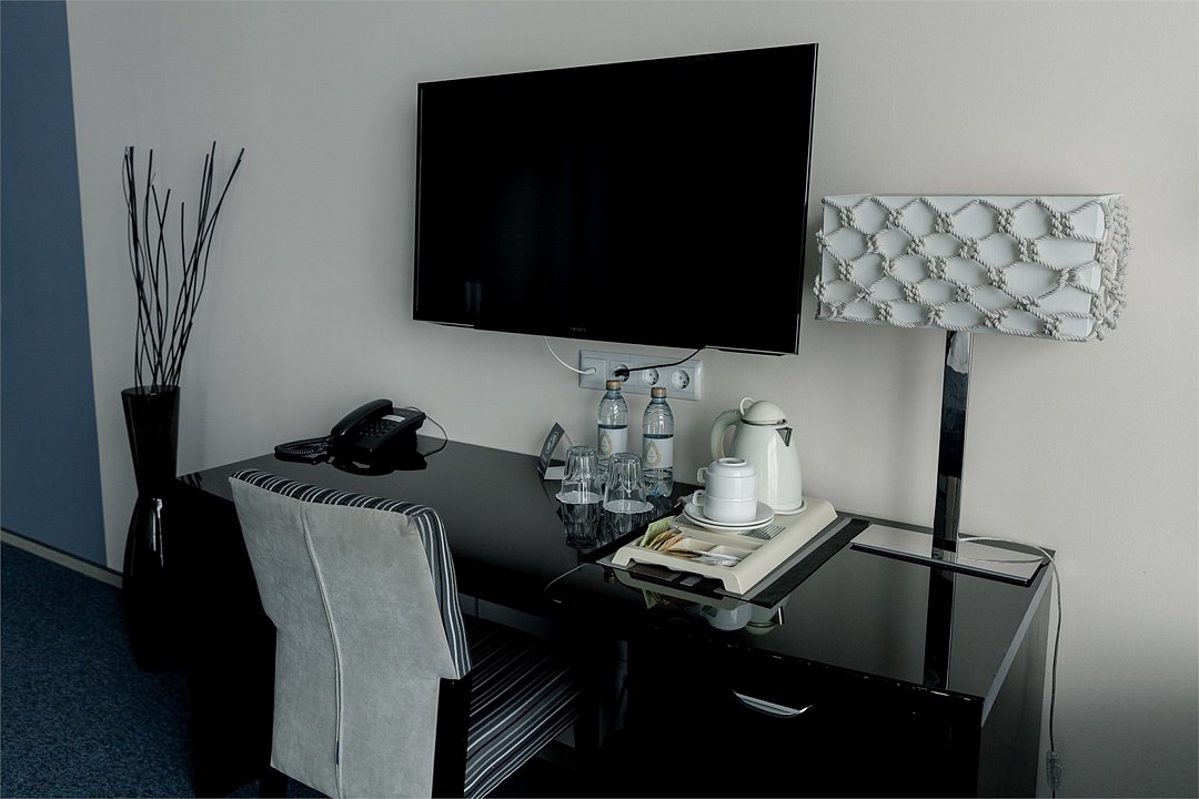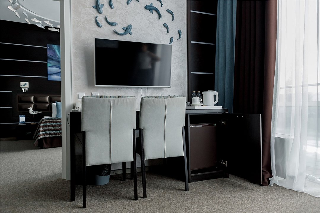 телевизор, кабельное телевидение, Wi-Fi, телефон, кондиционер, настольные лампы, фен, электронные замки, ванна, санузел, биде, теплый пол, халаты, тапочки, гигиенические средства, косметические средства, балкон с красивым видом, двуспальная кровать, ортопедический матрас, диван, шкаф для одежды, журнальный столик, письменный стол, багажная тумба, мини-бар, информационная карта, меню, сейф, чайник, мягкая мебель, питьевая вода, ковровое покрытие, вид на реку, кресло, москитная сетка, теплые полы, номер для некурящих, онлайн-регистрация до заезда, чайная станция, фумигатор, уборка номера, набор для приготовления чая и кофе, услуги прачечной (платно), бутилированная вода, мини-бар (платно), торговый автомат (за дополнительную плату), онлайн-регистрация, без питомцевВ номере