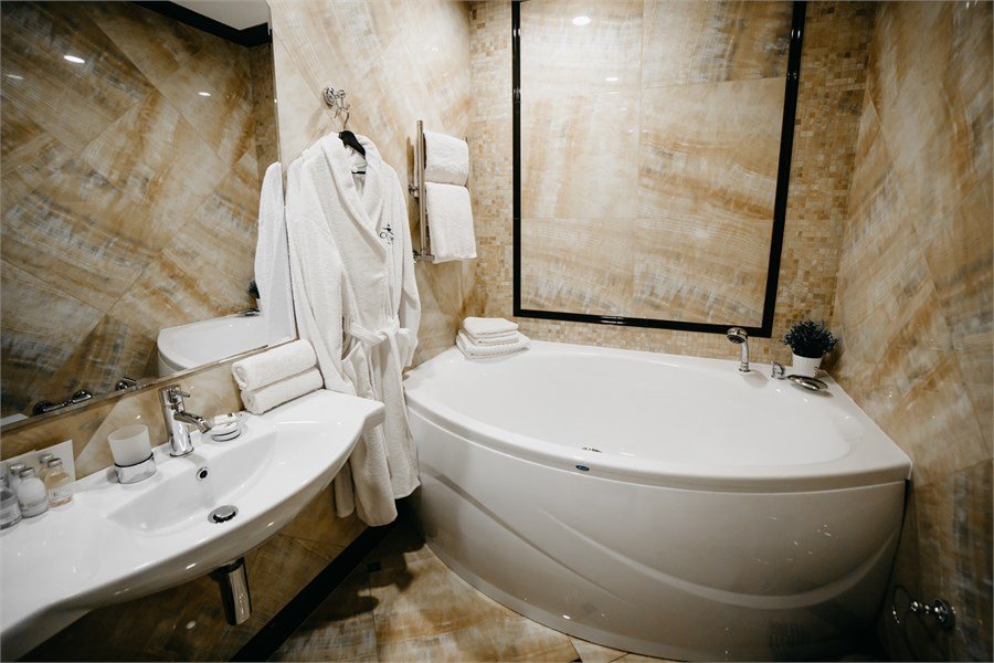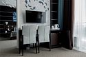 телевизор, Wi-Fi, телефон, кондиционер, фен, теплый пол, халаты, тапочки, гигиенические средства, балкон с красивым видом, двуспальная кровать, диван, стулья, шкаф для одежды, вешалки, журнальный столик, письменный стол, багажная тумба, зеркало, мини-бар, чайный набор, сейф, кулер на этаже, вид на реку, кресло, меню подушек, туалет, джакузи, чайная станция, вешалки-плечики, бутилированная вода, без питомцевВ номере