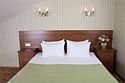 Уютные однокомнатные номера на мансардном этаже со скошенным потолком, оформлены в классическом стиле начала XIX века. Номера состоят из небольшой прихожей и спальной комнаты.