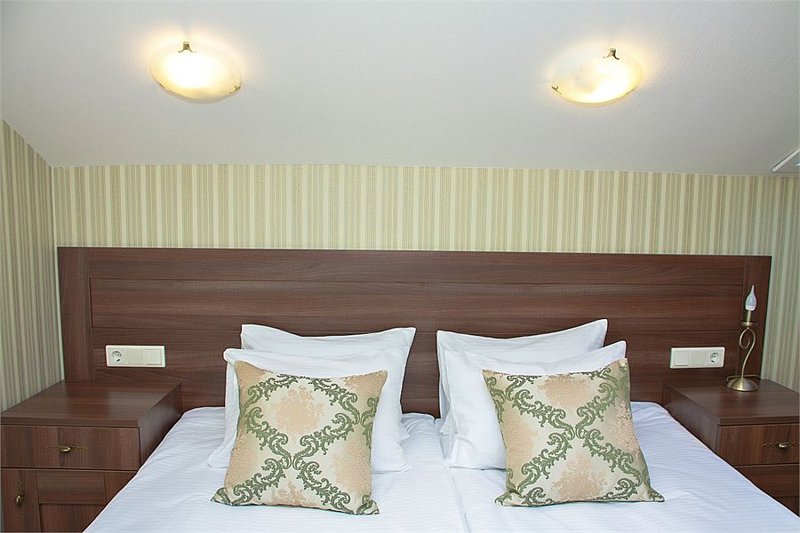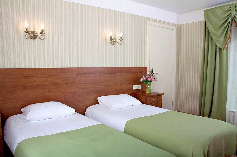 Просторные комфортабельные двухкомнатные номера выполнены в классическом стиле начала XIX века. Номера состоят из небольшой прихожей, ванной комнаты, гостиной с диваном и спальни.