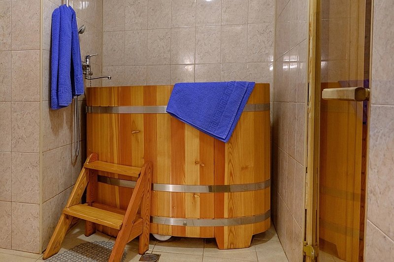 Читать полностьюВ уютной бане с купелью вы найдете все необходимое для комфортного отдыха: двухуровневую парную, уютную зону отдыха с LED-телевизором, а также душ и туалет, оснащенные феном и зеркалом. Для тех, кто хочет освежиться после парной, предусмотрен ушат с холодной водой.