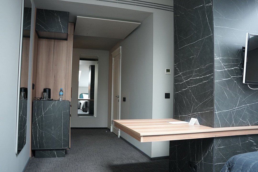 Стильный и светлый номер с изысканным интерьером, созданным для комфорта и отдыха. Эти номера расположены на мансардном этаже с уютной атмосферой или имеют вид на оживлённую улицу города — идеальный выбор для тех, кто любит быть в центре событий. В номере одна большая кровать «King Size» или 2 односпальные кровати с ортопедическими матрасами. В номере есть кондиционер, телевизор с плоским экраном, рабочее место и всё необходимое для приятного пребывания. В ванной комнате — тёплые полы, халаты, тапочки, фен и набор косметических принадлежностей. "Стандарт Премиум" — это немного больше уюта, немного больше простора и немного больше удовольствия от каждой детали.Услуги и удобства