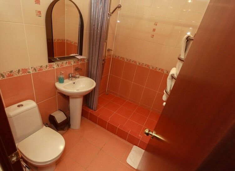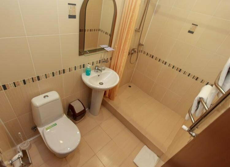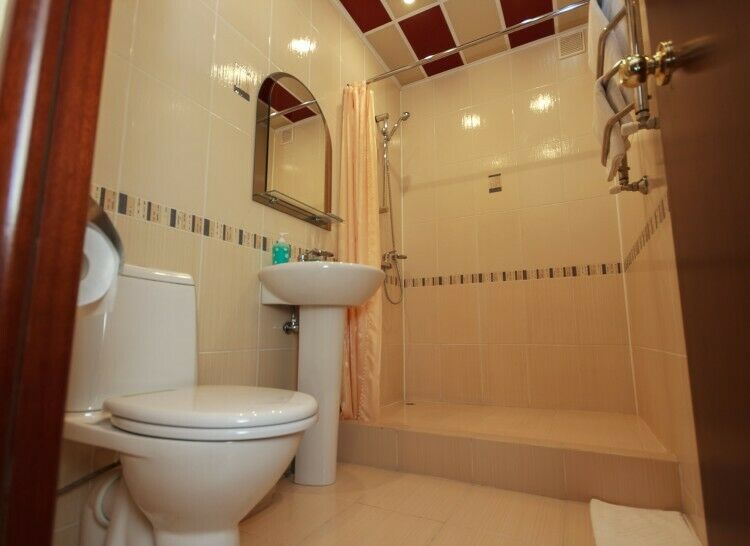Сам номер уже видал виды (см.фото, вместо вместо слов), и отчаянно нуждается в ремонте, но радует такой приятной мелочью, как подогрев пола. Это действительно очень круто!