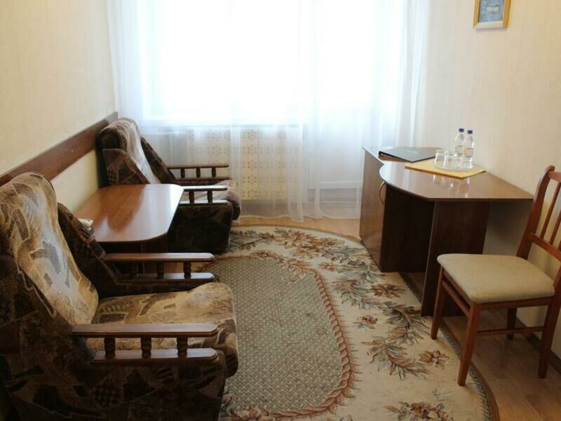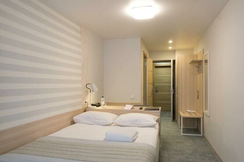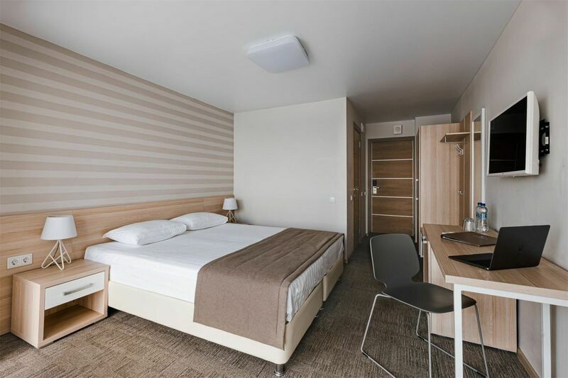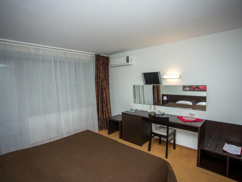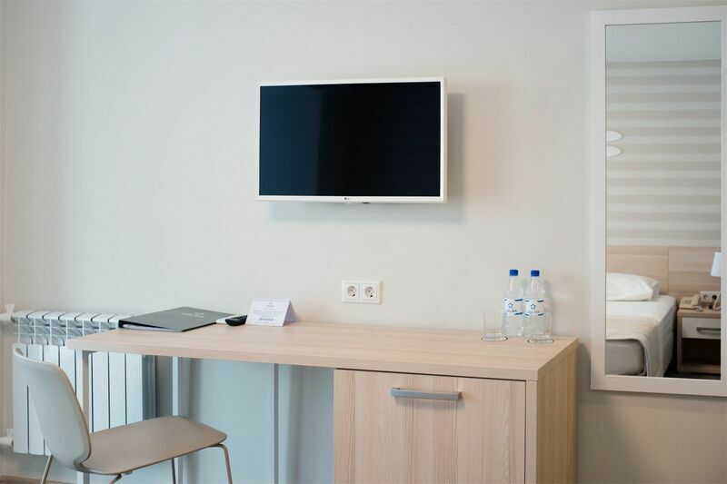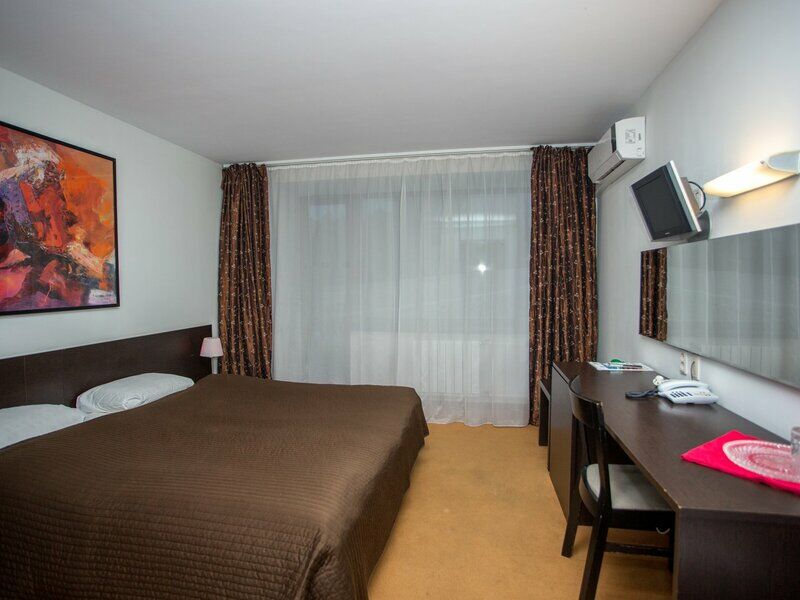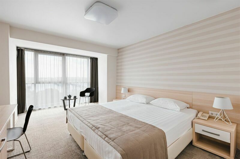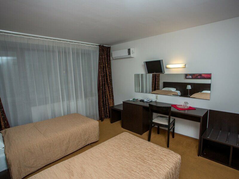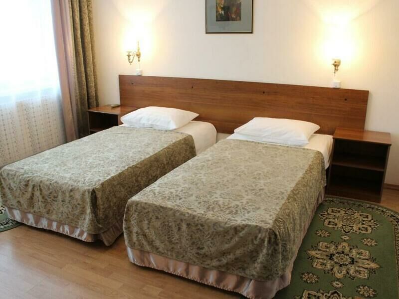 10-ти этажное здание отеля, оснащенное лифтами, возвышается в тихом зеленом районе города. Обширный номерной фонд рассчитан на единовременное размещение 280 человек. Гостям предлагаются двухместные номера разной категории комфорта. В каждом имеется собственный санузел с ванной, стандартный набор мебели, телевизор и холодильник.