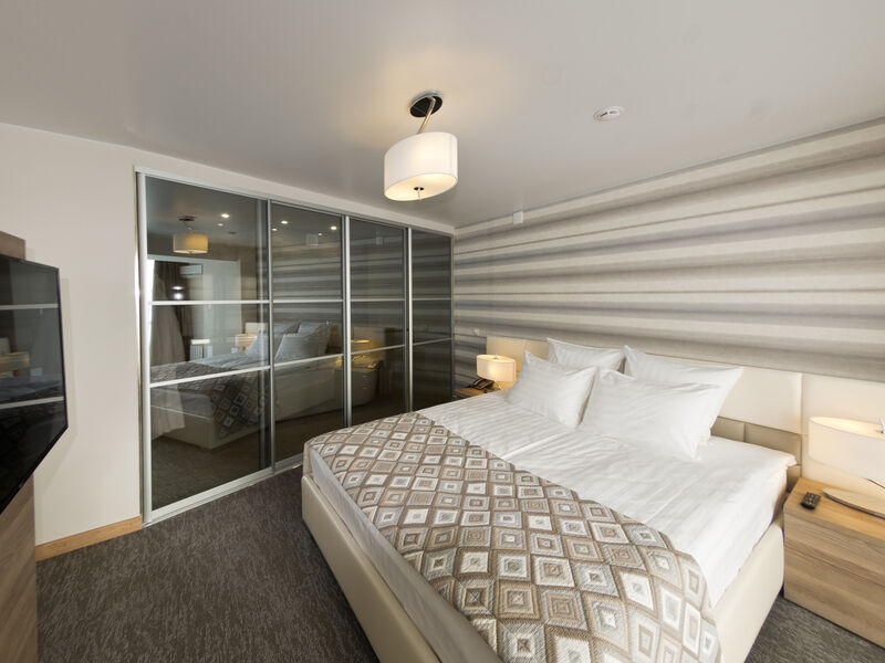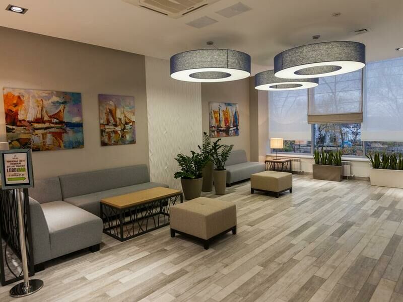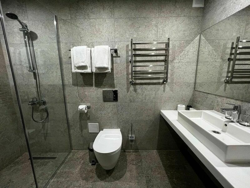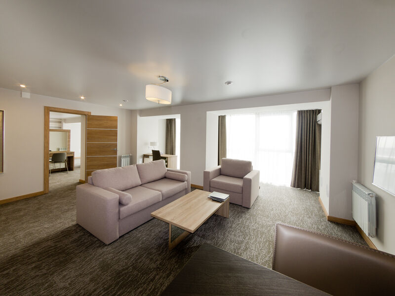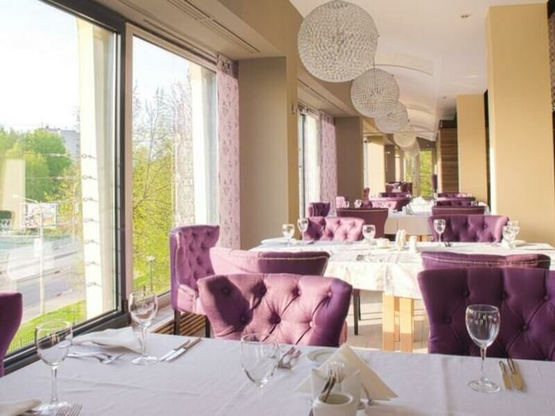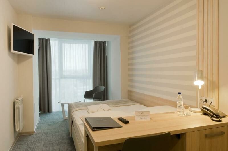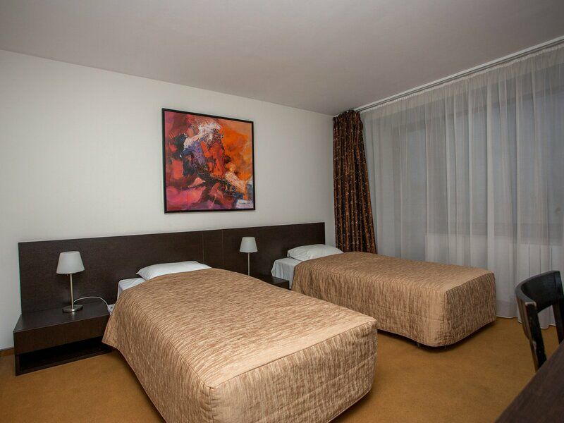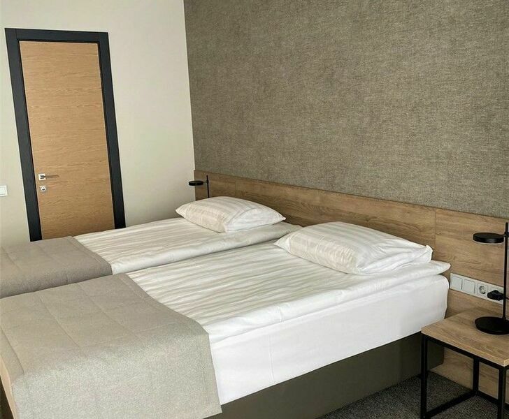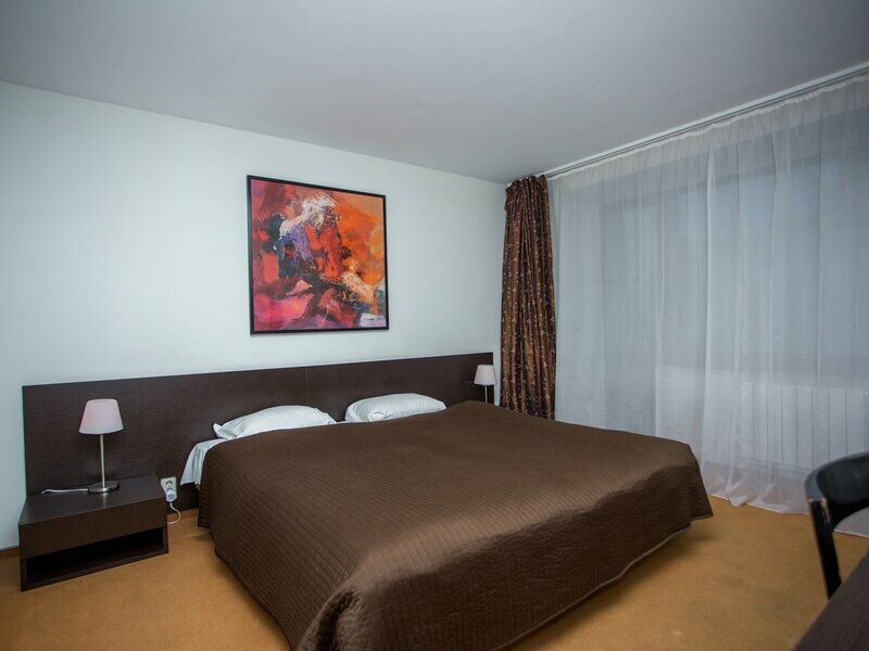 10-ти этажное здание отеля, оснащенное лифтами, возвышается в тихом зеленом районе города. Обширный номерной фонд рассчитан на единовременное размещение 280 человек. Гостям предлагаются двухместные номера разной категории комфорта. В каждом имеется собственный санузел с ванной, стандартный набор мебели, телевизор и холодильник.