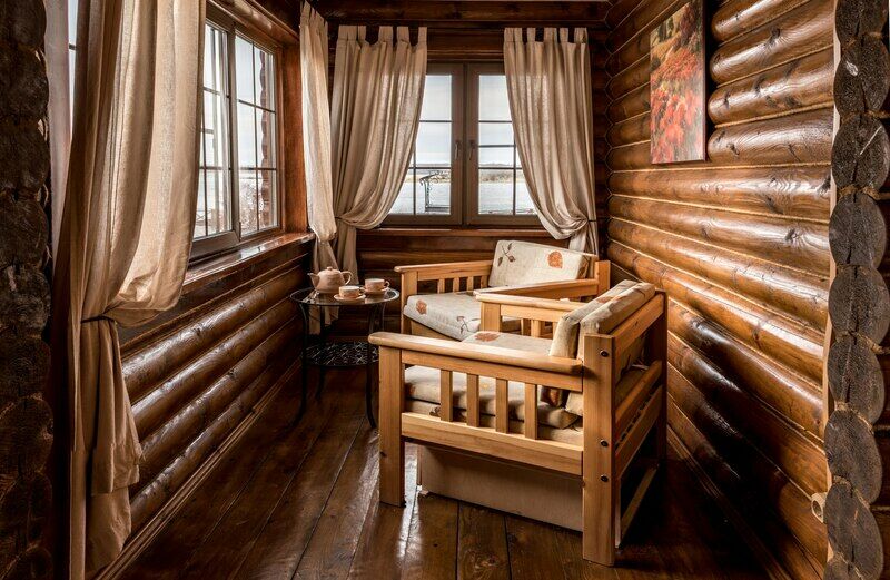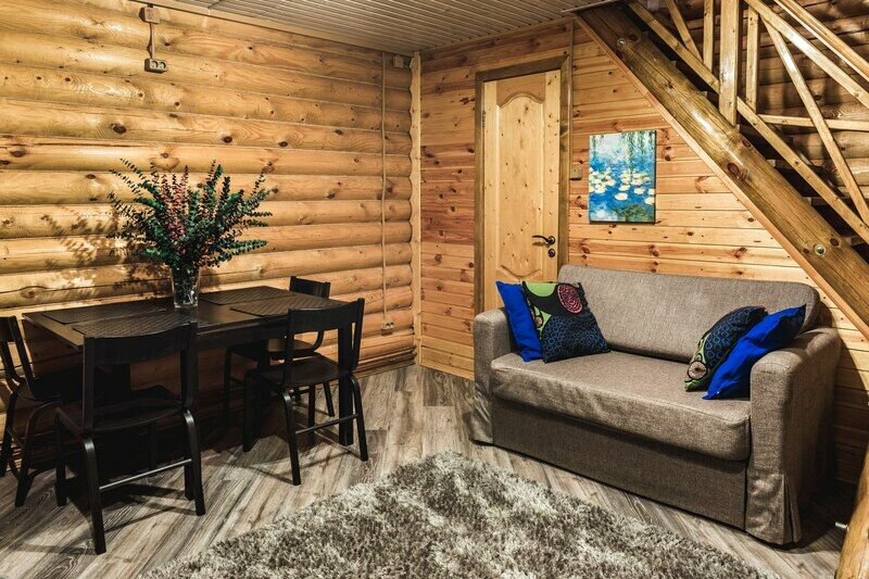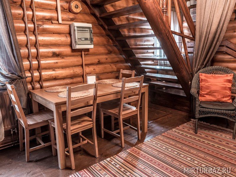 Номерной фонд базы представлен четырьмя коттеджами из дерева, различной вместимости. Внутри домов есть все условия для проведения отдыха в комфорте. Два из домов оснащены банями. На территории комплекса есть баня, отделанная деревом, включающаяся в себя просторную парную, душ, санузел.