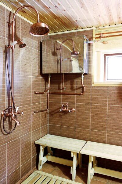 Баня находится в доме и оплачивается дополнительно на месте пребывания.