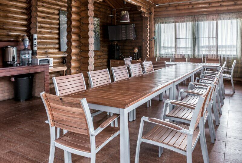 Возможно проведение праздничных и корпоративных мероприятий. Для этого на территории есть небольшой банкетный зал, беседки на свежем воздухе. Внутри заведения можно приготовить шашлык, уху, и другие блюда на огне.
