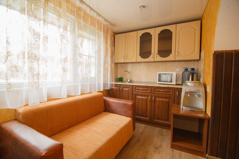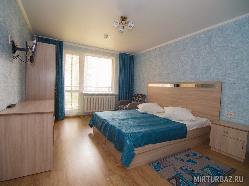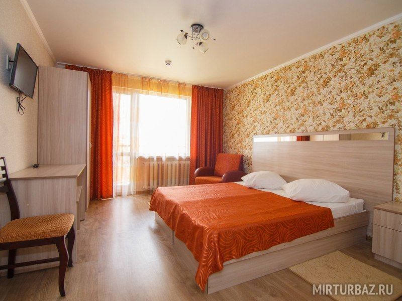 В номере двуспальная кровать или две односпальных кровати, телевизор, гардероб, стол, кресло.