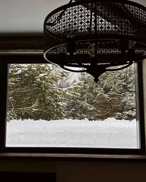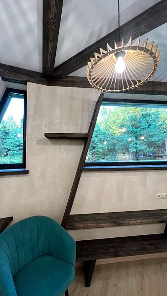 - панорамные окна с видом на лес;