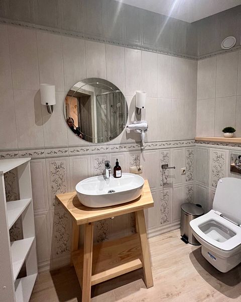 санузел с раковиной в форме ракушки;